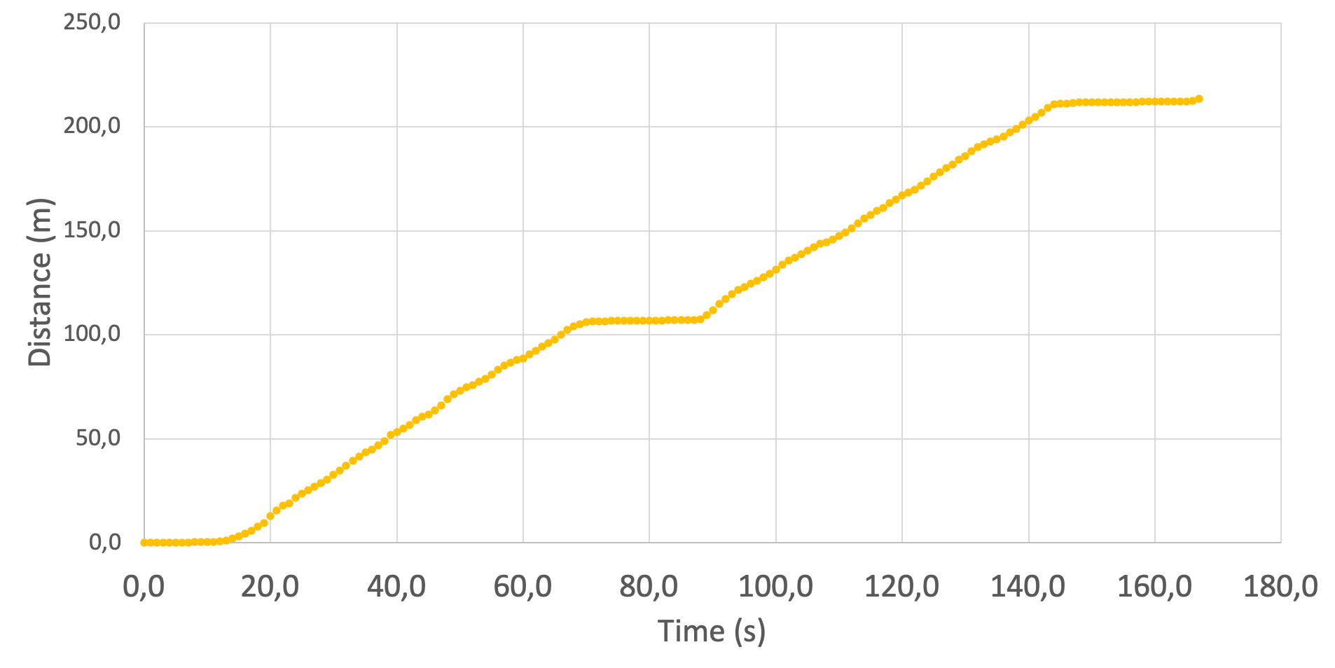 4. Usando o módulo "location" do phyphox, colete dados enquanto caminha em ritmo constante do ponto A ao ponto B e de volta ao ponto A.