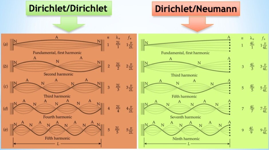 As ondas que não têm os valores (\(k_n,\lambda_n\omega_n\)) não vão produzir ondas estacionárias.