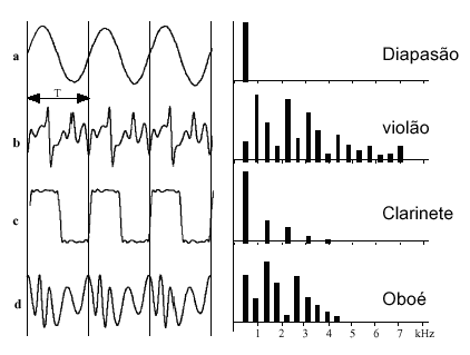 Mesmo que a mesma frequência seja tocada é possível identificar o instrumento e a voz!