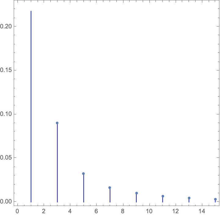 Desenhe o espectro da série de Fourier desta solução, isto é, o gráfico que mostra a amplitude An em função do número do harmônico, n.