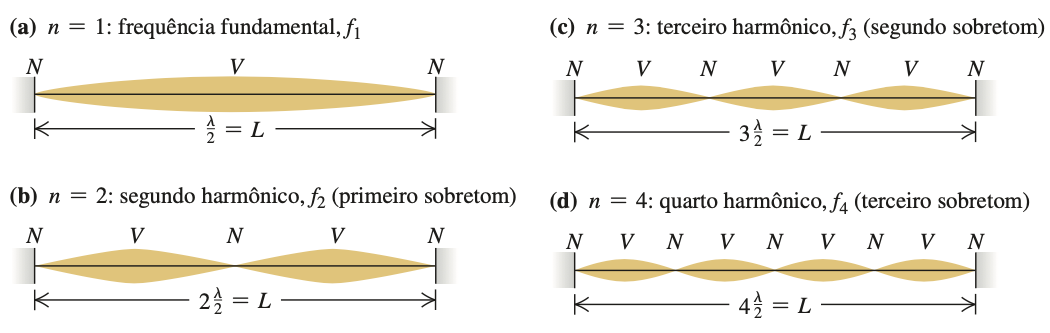 Fonte: Sears & ZemanskyA figura mostra os primeiros 4 modos normais de vibração: