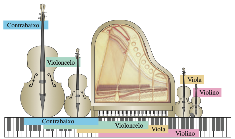 Fonte: Sears & ZemanskyCordas longas produzem baixas frequências (graves) e curtas produzem altas frequências (agudas).