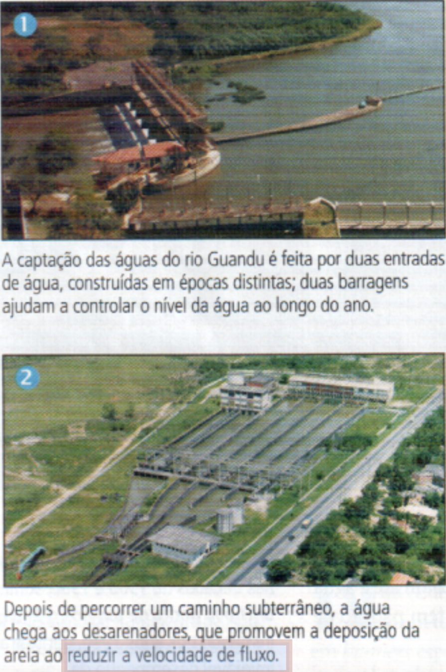 “... a água é tratada com recursos físicos e químicos.”