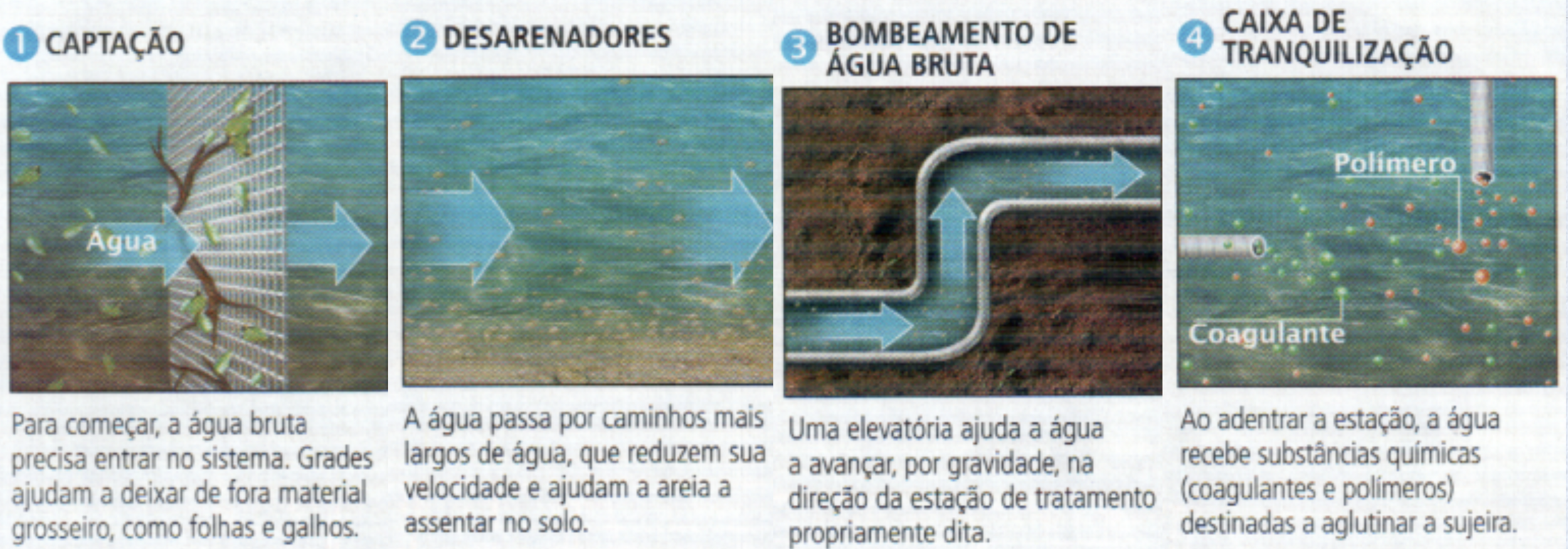 “... a água recebe substâncias químicas (coagulantes e polímeros).”