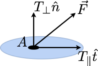 Existem tensões normais (\(T_{\bot}\) ) e tensões tangenciais (\(T_{\|}\)) à superfície.