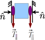 \(\hat n, \hat t\) são vetores unitários nas direções normal e tangente à superfície de contato.