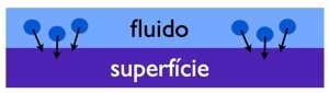 As moléculas na camada do fluido colidem contra a superfície, pressionando-a perpendicularmente: Tensão normal.