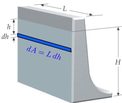 Uma barragem de comprimento horizontal L represa água de densidade específica ρ a uma altura H. Qual é a magnitude da força exercida pela água sobre a barragem?