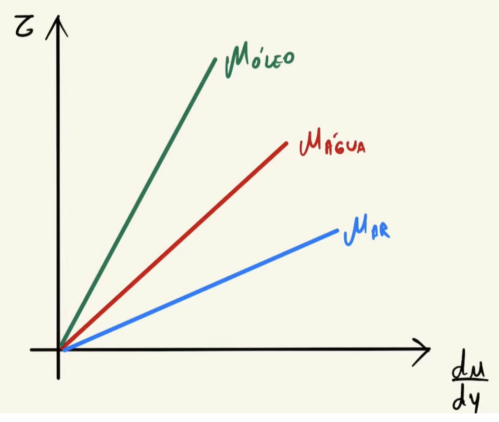 Newtonianos => a viscosidade dinâmica (\(\tau\)) é constante para uma dada pressão e temperatura.