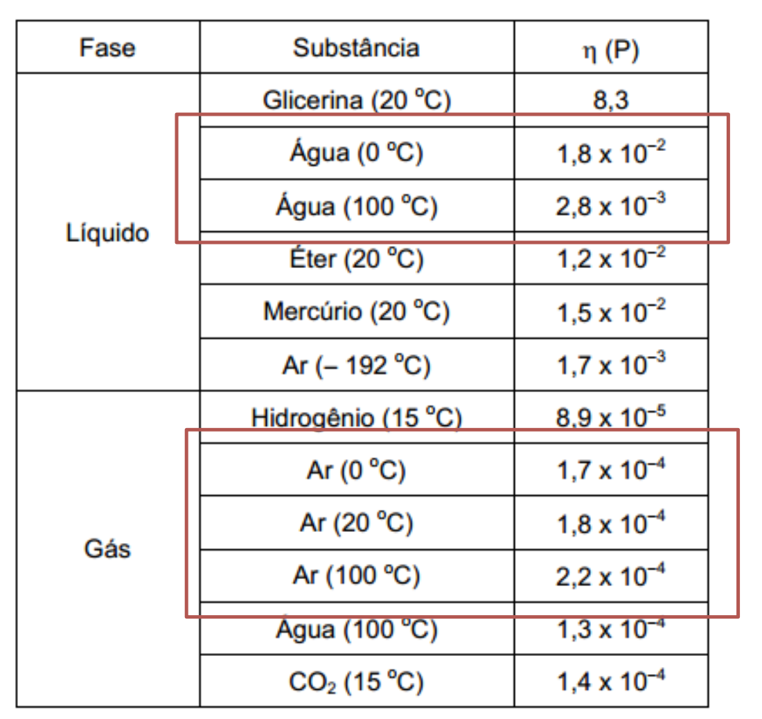 Para os líquidos a viscosidade decresce com o aumento da temperatura.