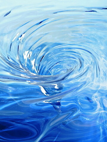 Escoamento rotacional. Uma partícula do fluido gira ao mesmo tempo que é transportado pelo movimento.