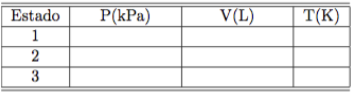 (a) Complete a tabela desta questão com as propriedades termodinâmicas (P,V,T) dos estados 1, 2 e 3.