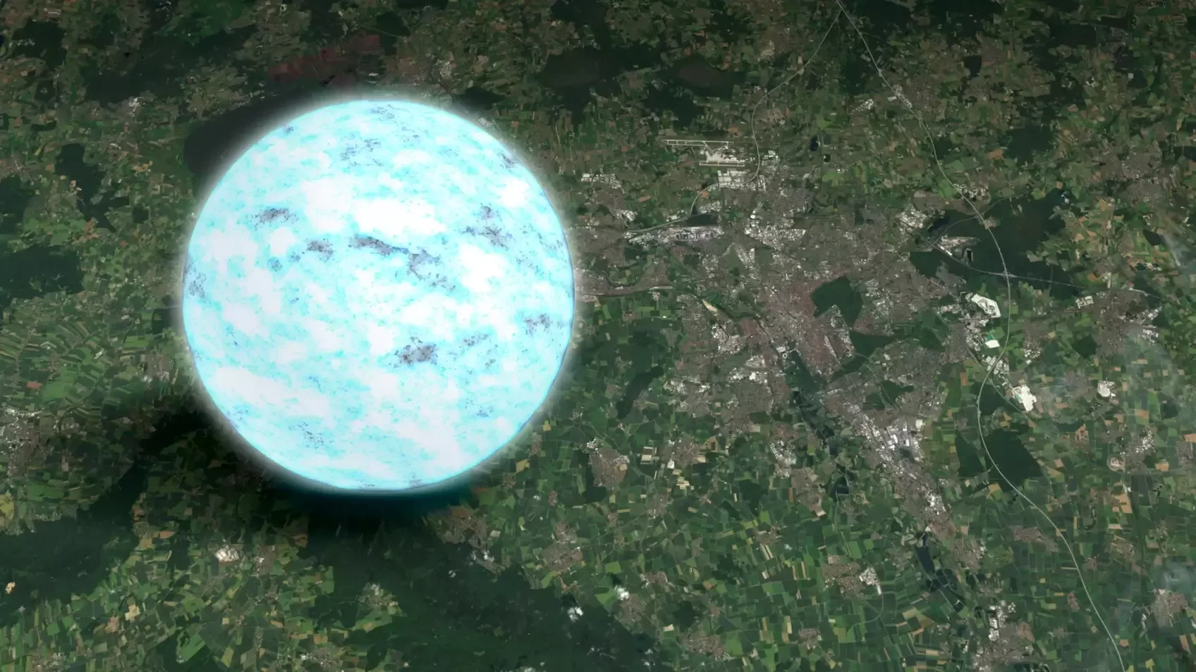 A arte ao ilustra uma estrela de nêutrons próxima à Berlin/Alemanha.