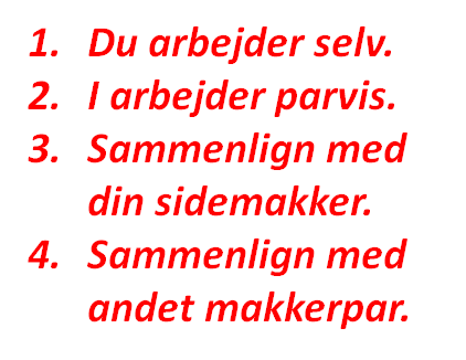 Eleverne samarbejder i CL-lignende strukturer, og hver instruktion er markeret med røde tal.