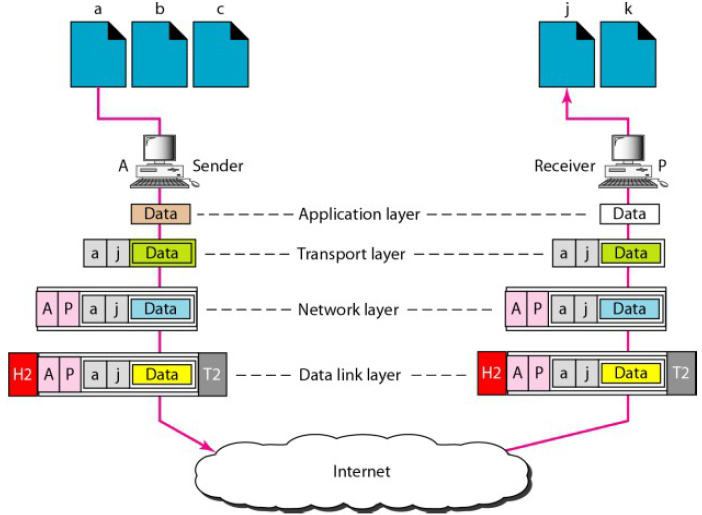 Hierarchical protocol made up of interactive modules – upper-level protocol is supported by one or more lower-level protocols