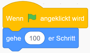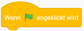 Wenn man nun die Fahne über der Bühne anklickt wird alles nacheinander ausgeführt, was unter dem Block angehängt wurde.