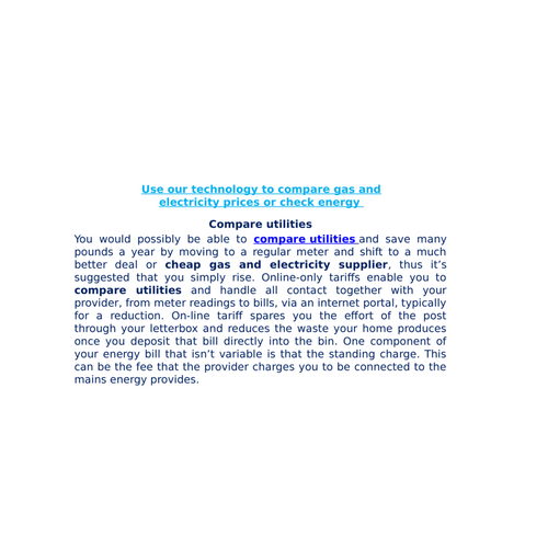 Companies can even base things on whether or not you're a medium or high user. this can be selected by whether or not you're one occupier or lives in an exceedingly one bed roomed flat a family living in an exceedingly semi or an outsized family living in an exceedingly large house. The tariff you choose is vital too. Those on a variable tariff can see that their charges will raise, particularly those with the foremost firms. By identical token if costs fall their tariff can lower. Customers on a set rate pay identical quantity for a selected amount although costs rise or fall. We compare utilities to give optimum result to customers and provide cheapest gas and electricity suppliers.