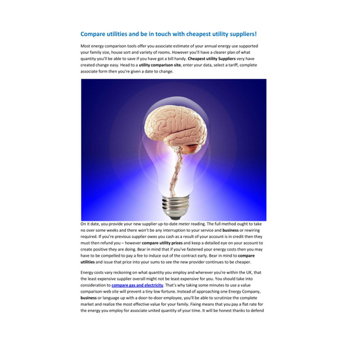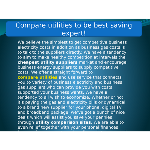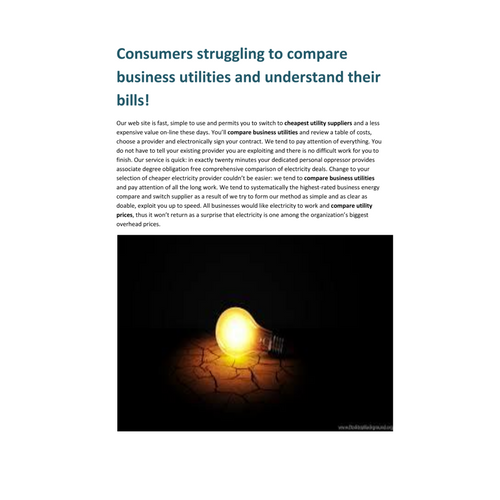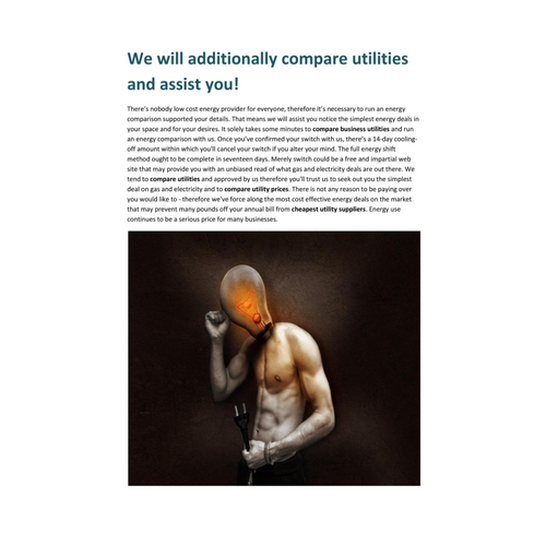 There is not any reason to be paying over you would like to - therefore we've force along the most cost effective energy deals on the market that may prevent many pounds off your annual bill from cheapest utility suppliers. Energy use continues to be a serious price for many businesses.