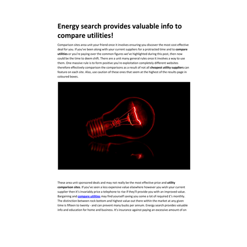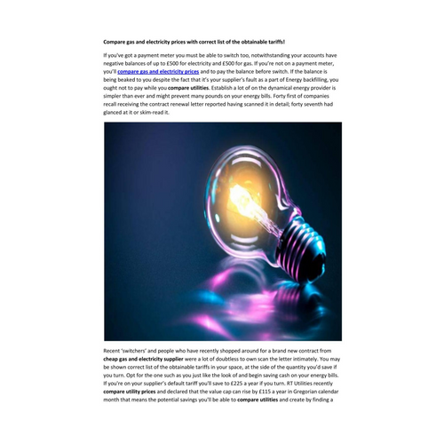 you’ll compare gas and electricity prices and to pay the balance before switch. If the balance is being beaked to you despite the fact that it’s your supplier's fault as a part of Energy backfilling, you ought not to pay while you compare utilities. Establish a lot of on the dynamical energy provider is simpler than ever and might prevent many pounds on your energy bills. Forty first of companies recall receiving the contract renewal letter reported having scanned it in detail; forty seventh had glanced at it or skim-read it.