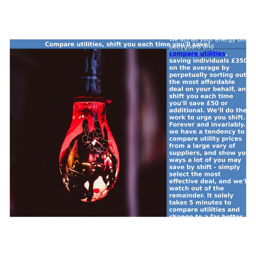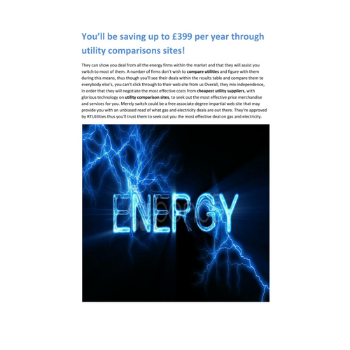 we conjointly compare utilities and give cheaper gas and electricity costs from smaller energy suppliers. we offer utility comparison sites from all energy suppliers to form positive you'll notice the most affordable gas and electricity costs in minutes. Here’s list of all the united kingdom energy suppliers that you just compare. we have a tendency to competitory supply from your existing provider mistreatment info you give to North American country like your annual consumption in addition as any further prices or charges you will pay within the competitor supply over the contract amount. The promotion is on the market to little and medium enterprises with but ten non-half hourly electricity or non-daily metered gas sites. for more info: https://www.rtutilities.com/