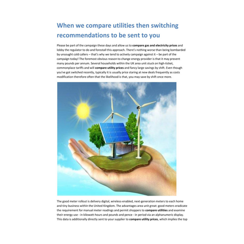 No matter how, but you should compare utilities and gather valuable information and details about the sustainability policy of energy providers. In other words, the supplier's sustainability policy is another important thing to consider when hiring. For more info: https://www.rtutilities.com/compare-energy/business-energy/gas-electricity-prices/
