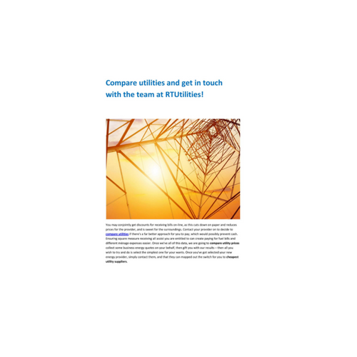 Companies can even base things on whether or not you're a medium or high user. this can be selected by whether or not you're one occupier or lives in an exceedingly one bed roomed flat a family living in an exceedingly semi or an outsized family living in an exceedingly large house. The tariff you choose is vital too. Those on a variable tariff can see that their charges will raise, particularly those with the foremost firms. By identical token if costs fall their tariff can lower. Customers on a set rate pay identical quantity for a selected amount although costs rise or fall. We compare utilities to give optimum result to customers and provide cheapest gas and electricity suppliers. For more info: https://www.rtutilities.com/ https://www.rtutilities.com/compare-energy/business-energy/gas-electricity-prices/