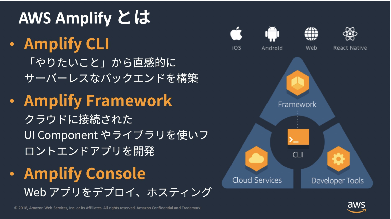 これはAWSの公式でも言われているが、認証周りやデプロイ等のプロダクトそのものの機能とは少し外れた部分の実装コストをかなり下げることが可能