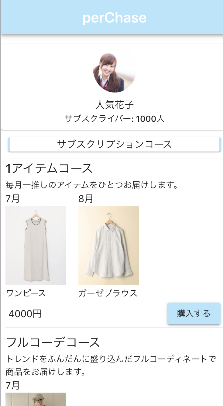perChaseというアプリを開発中。登録したインフルエンサが選んだファッションアイテムが、定期的に送られてくる
