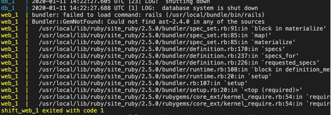 ぐぐったエラー文:Bundler::GemNotFound: Could not find ast-2.4.0 in any of the sources