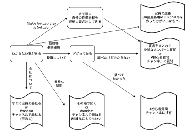 - 煮詰まった時にどう考えをまとめて、どう質問するかのフローを確立した方が良い。現状だと人に聞かれたりしないと、考えまとめたり、方向性をどうするかを決めることができていない