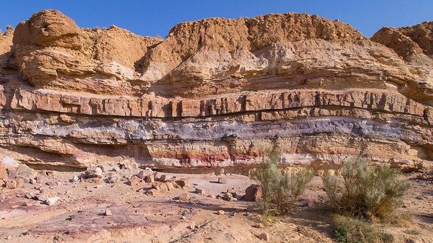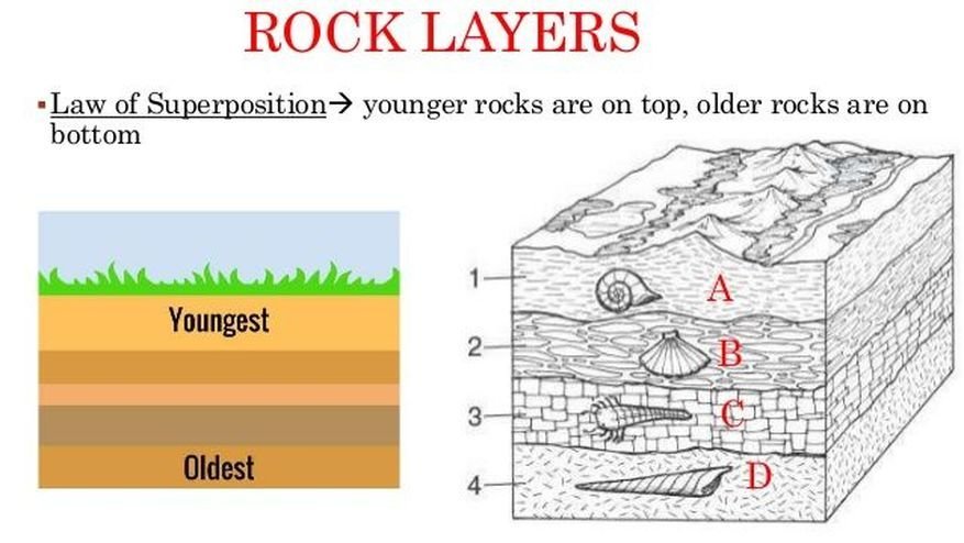 The LAW OF SUPERPOSITION states "In horizontal rock layers the oldest layer is at the bottom. Each layer higher is younger than the one below it"
