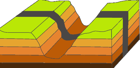 Intrusion: lava that cools within the earth. An intrusion is always younger than the rock layers around and beneath it.