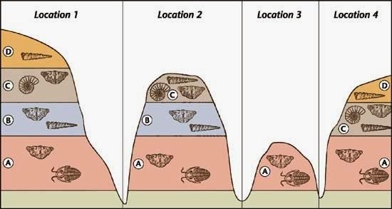THE LAW OF SUPERPOSITION to find the relative age of rock layers