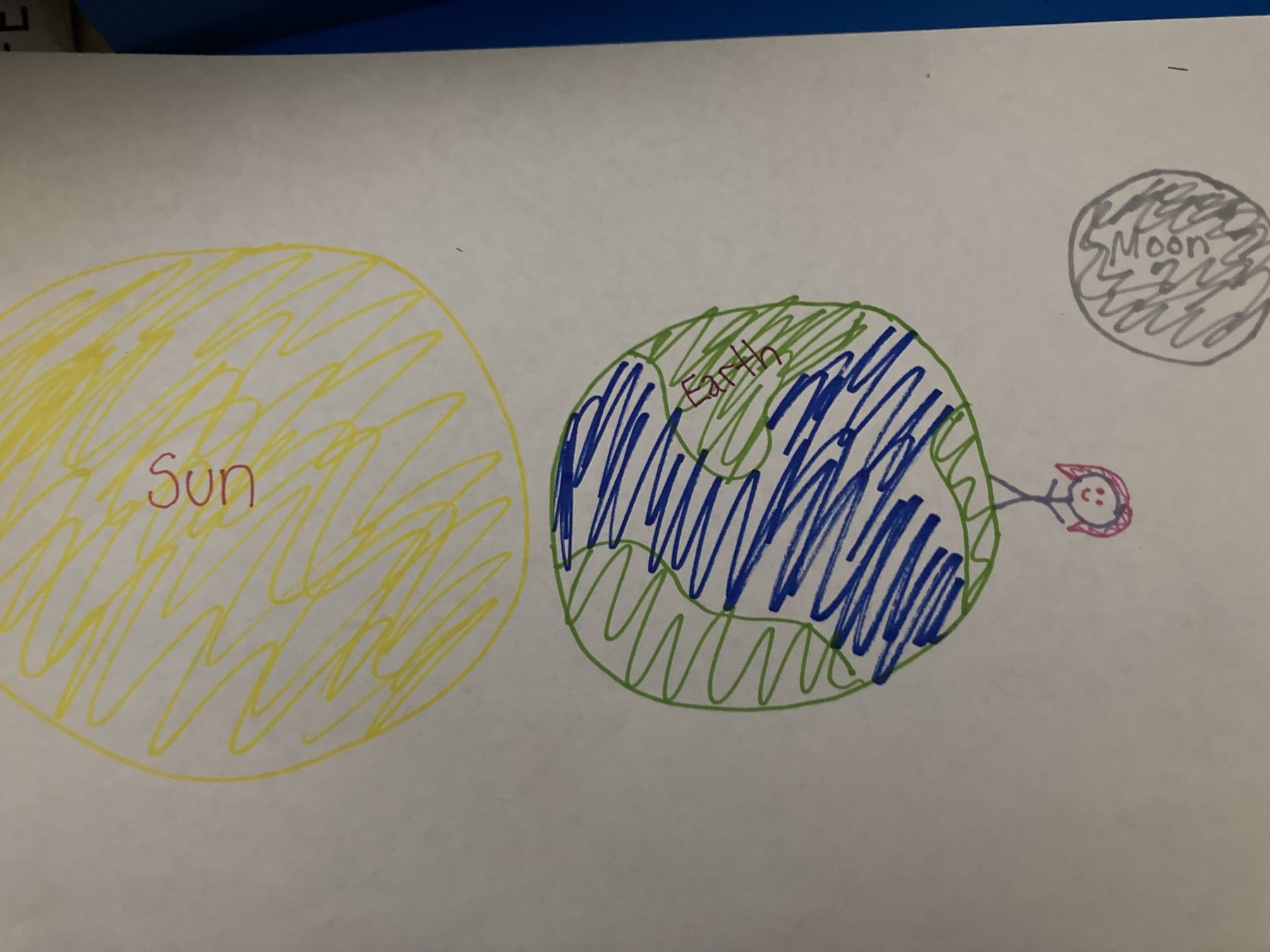 Grab a piece of paper and draw, color, and label a large circle (sun), medium circle (earth), and small circle (the moon)