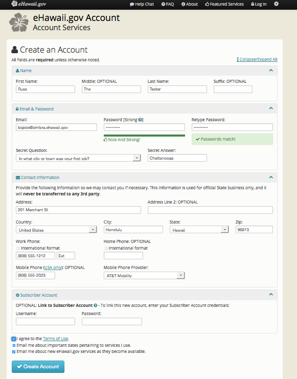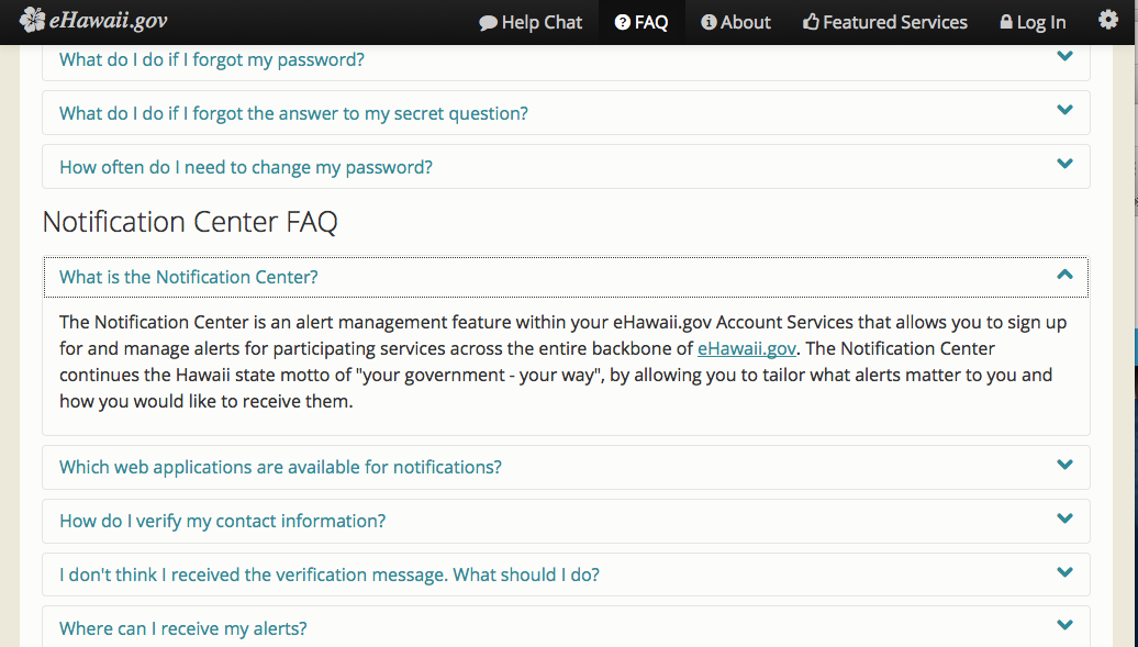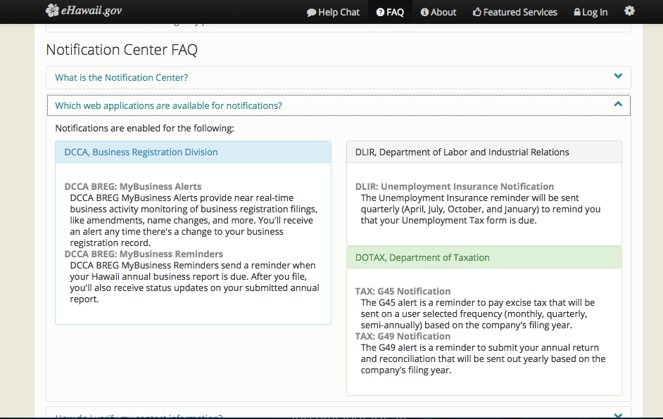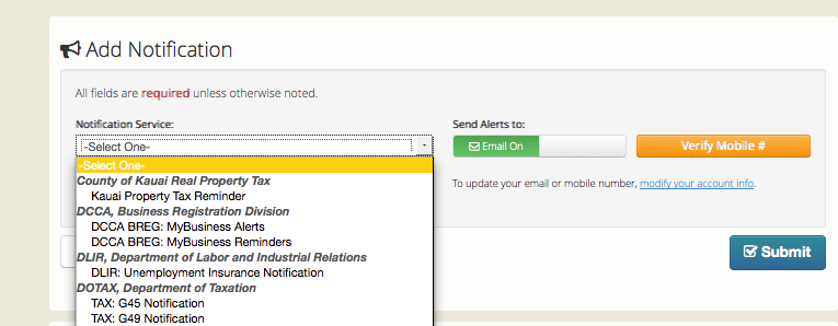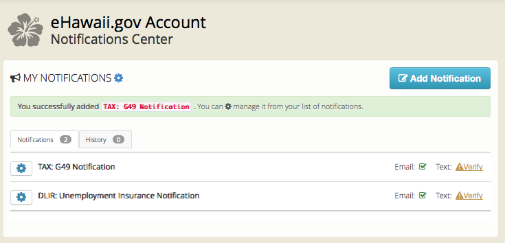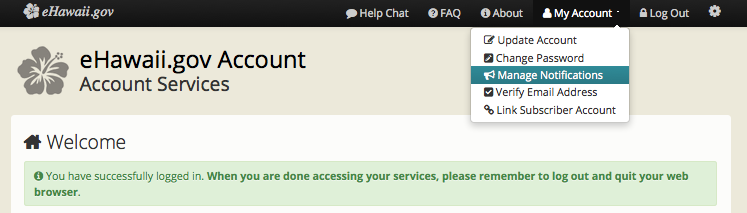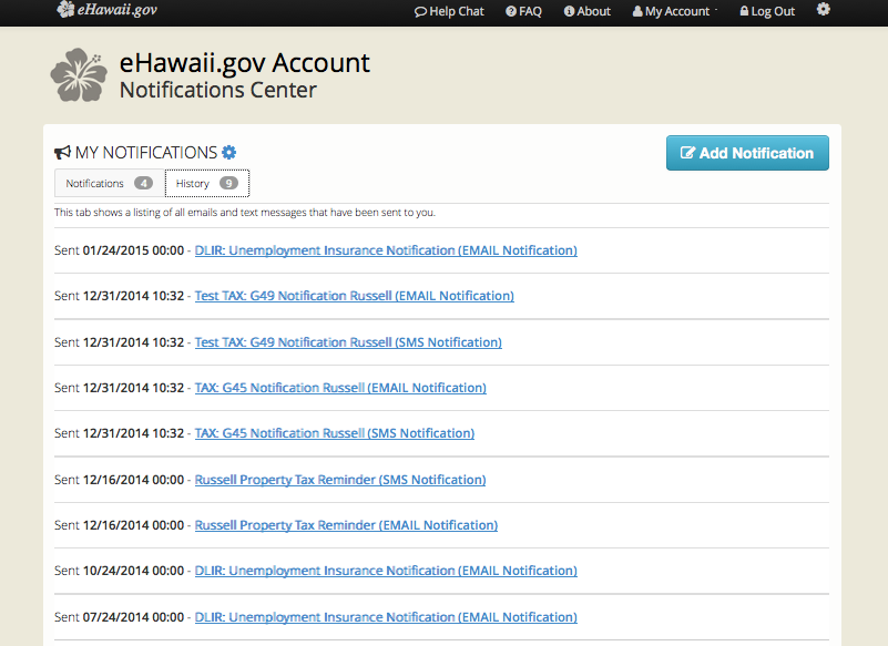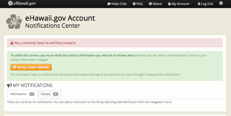 Page walk-through of the eHawaii.gov Notification Service