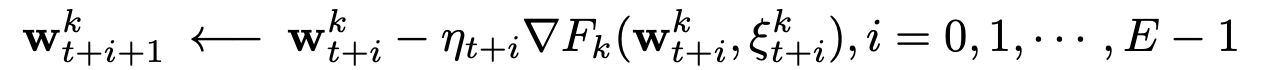 distributed client update: (\(E\) steps with random samples \(\xi\))