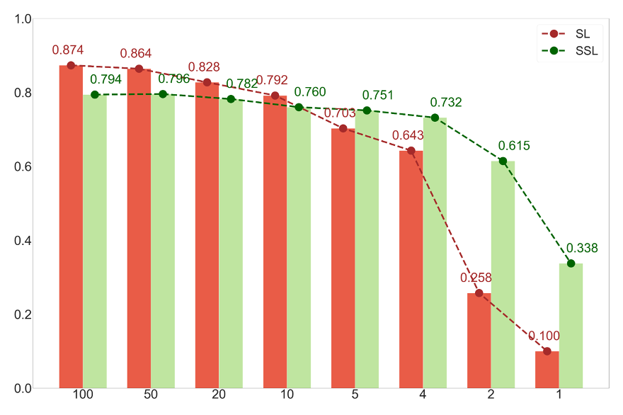 Algorithm 2: Self-Supervised Learning (SSL): Train common visual representation, then only "fine-tune" a small "head" on the supervised data.