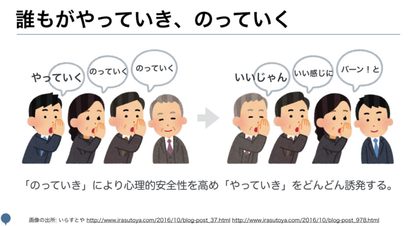 - のっていき: 誰かが始めた何かを「良いじゃん!」と後押しする