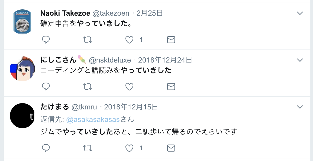 - やっていき: 誰かが、何かをやっていく