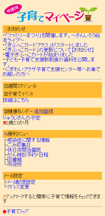 中津川市 子育てマイページ