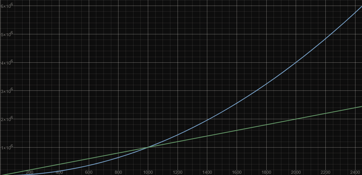 成長慢 = 資料量大時計算量較小 = 好方法