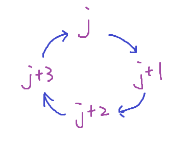 可對應至左轉 = 逆時針 90 度 = 減 1 = 加 3