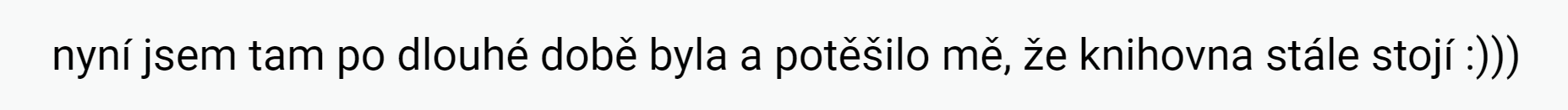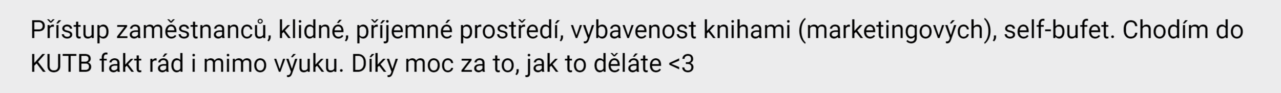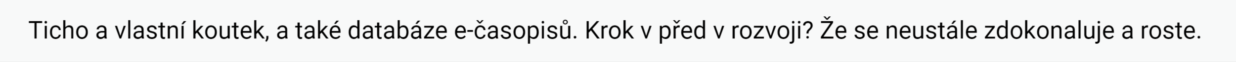 větší důraz na dodržování ticha a klidu v knihovně během celého dne, možnost rozšíření studoven či doplnění o prostor pro soukromé schůzky, práci apod. (?)