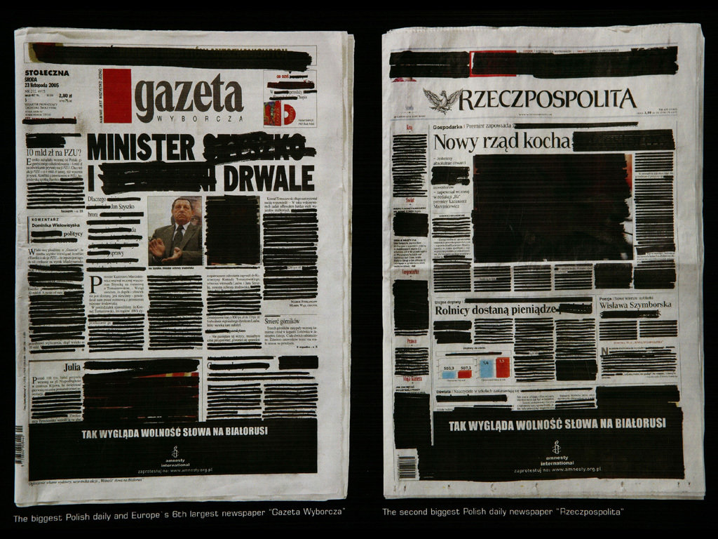 kampaň zahájena v listopadu 2005 = "cenzurované" vydání polských deníků GAZETA WYBORCZA a RZECZPOSPOLITA