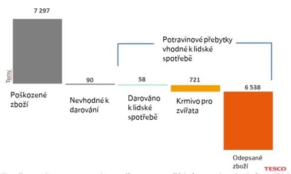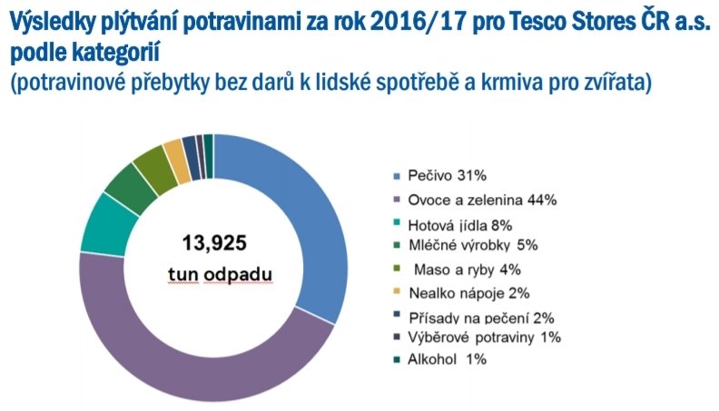 2017 - Tesco = 127 z celkových 387 tun vybraných potravin / drogistického zboží
