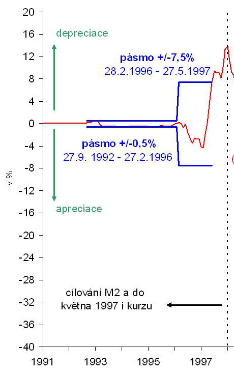 až do května 1997 - FIXNÍ KURZ koruny = ojedinělé v postkomunistických zemích = KOTVA čsl. ekonomiky