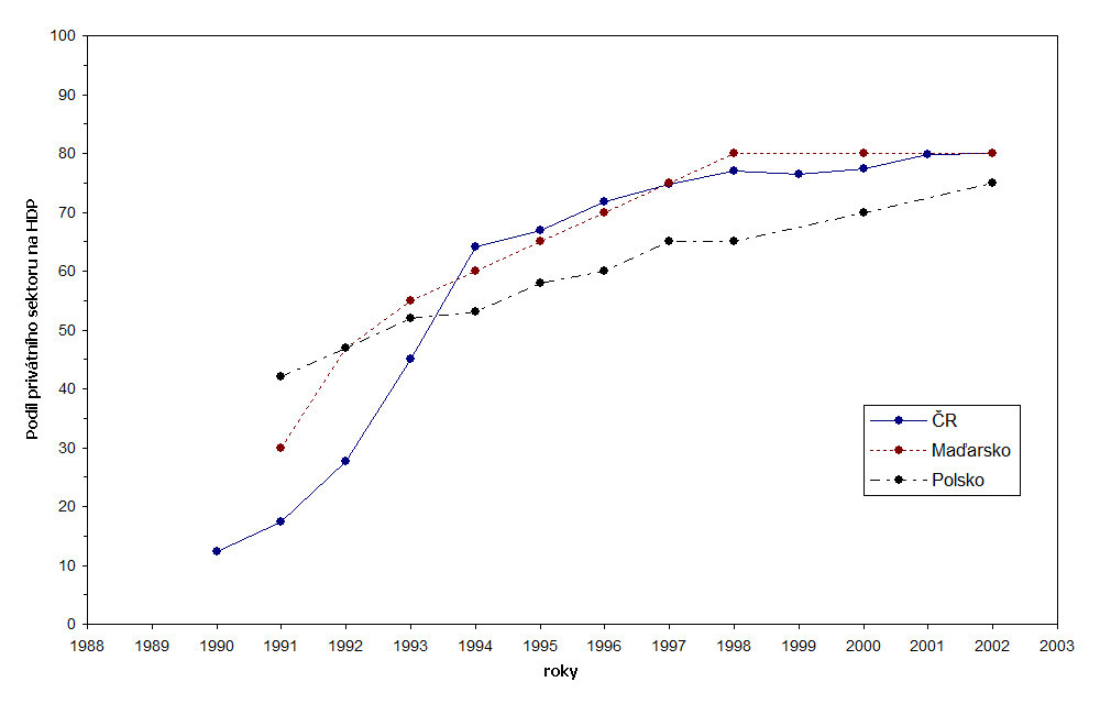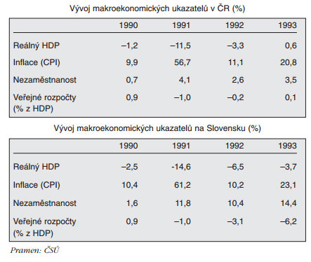 přeměna / přechod československé ekonomiky z příkazové formy řízené státem na tržní, se soukromým sektorem