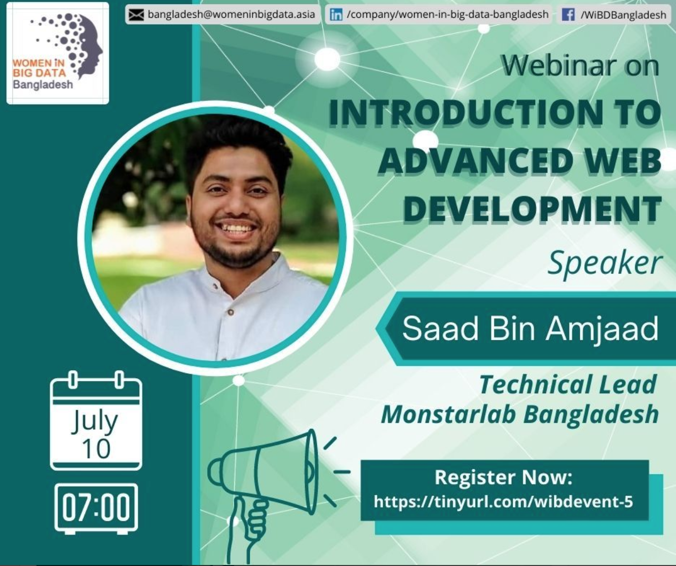 Webinar on "Introduction to Advanced Web Development" and will follow it up with virtual workshops for Women in Big Data Bangladesh (WiBD).