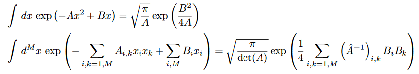 Which if read from left to right is definition of Gaussian integral and if read from right to left is the Hubbard Stratanovich transformation
