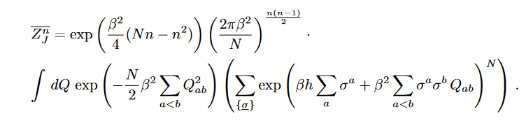 In addition we only keep terms exponential in n, as for free energy computation, n2 terms will vanish as n goes to 0